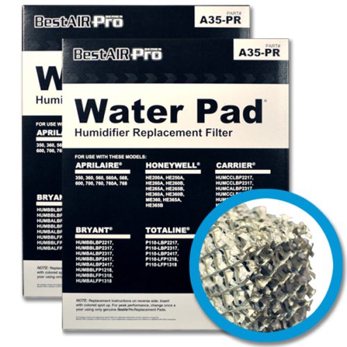 This high-quality product is made by a leading manufacturer to replace the humidifier filter (AKA water panel, water pad, evaporator pad) in many makes and models of whole house humidifiers. This product is found in the small bypass?humidifiers manufactured by?Aprilaire,?Honeywell,?Bryant,?Carrier,?Totaline,?Lennox,?Trane,?American?Standard?and many others.